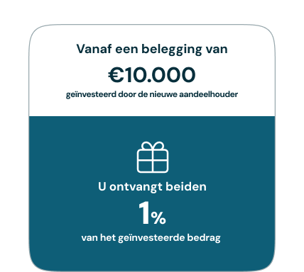 Draag een nieuwe belegger bij ons aan en zowel u als de nieuwe aandeelhouder ontvangen een interessante beloning!